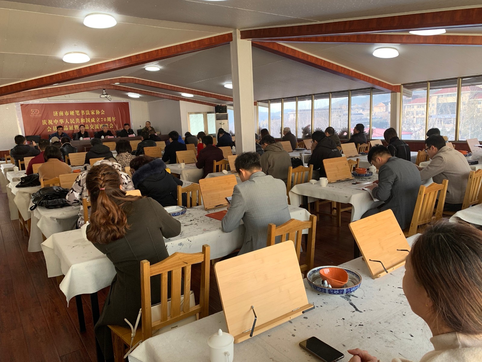 济南市硬笔书法家协会于11月29日在济南南部山区仲宫镇朋源文化会馆成功举办了“庆祝中华人民共和国成立70周年会员优秀作品展”启动仪式暨书法交流座谈会。